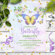 Sweet and summery butterfly theme girl's birthday party invitations. Featuring lovely bunch of watercolor flowers and pastel butterflies.