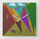 Out of this world design in turquoise with gold rays and a touch of purple. These dramatic clocks add a touch of flair to your decor. This one is a stunning digital abstract. Counter clockwise numbers for people who are always short on time - or just for people who like to be a bit different! The painting was designed to invoke speed. And as time flies so does the design.