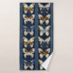 Butterfly, vertical stripes, navy blue, beige bath towel set
