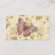 Pink butterfly on Shabby Chic floral background biz cards, brown lettering
