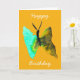 Pretty watercolour hand drawn butterfly in aqua and brown colours with golden yellow. Happy cheerful butterfly design.