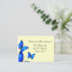 These small wedding enclosure cards are a very economical way of adding your reception information to your Invitations, or what ever information you would like your guests to know. These wedding enclosure cards are done in a pale yellow with bright blue butterflies. Customise the text on front and back to suit your needs.