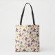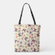 A tote bag covered with pink, purple, and orange butterfly wings.