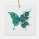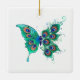 Butterfly with Green Peacock Feathers Ceramic Ornament