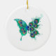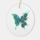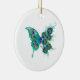 Butterfly with Green Peacock Feathers Ceramic Tree Decoration
