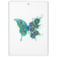 Artistically drawn, fictional, green, detailed butterfly with green, beautiful, peacock feathers on white background.