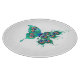Artistically drawn, fictional, green, detailed butterfly with green, beautiful, peacock feathers on white background.