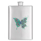 Butterfly with Green Peacock Feathers Hip Flask