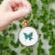 Artistically drawn, fictional, green, detailed butterfly with green, beautiful, peacock feathers on white background.
