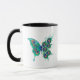 Artistically drawn, fictional, green, detailed butterfly with green, beautiful, peacock feathers on white background.