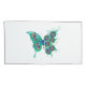 Artistically drawn, fictional, green, detailed butterfly with green, beautiful, peacock feathers on white background.