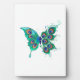 Artistically drawn, fictional, green, detailed butterfly with green, beautiful, peacock feathers on white background.