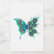 Artistically drawn, fictional, green, detailed butterfly with green, beautiful, peacock feathers on white background.