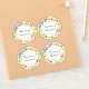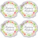 Contoured stickers featuring a butterfly on a floral wreath of roses and leaves, customised with the name of the bride and groom for wedding water and wine bottles or baby shower favours. Additional text for the event date and location. Best on 6" stickers - for a total of four approximately 3" stickers - and larger sizes.