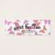Butterfly'Just For You' Wedding favour Gift tag, featuring the words "Just For You" in a fancy swirly font. The bride and grooms names and wedding date are printed below the message.A background of pink and purple butterflies is printed behind teh wording. you can add your own thank you message or other wording. alternative paper and colours available. You will need to punch a hole in one corner of the card with a paper punch, thread through some ribbon and tie to your favour box.