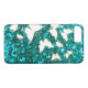 Girly butterfly smartphone case including beautiful simulated turquoise coloured glitter bling digitally printed on the cover, along with pretty butterflies in white with gold coloured edging. Cover your cellphone in style with a touch of nature and bling.