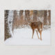 Button Buck Deer in Winter White Snowy Field. A few Trees are in this winter scene.