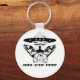 Printed on one side of a standard button that is attached to a lightweight keychain