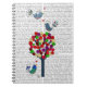Button Tree and Birds Blue Spiral Notebook