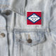 This button proudly showcases the distinctive Arkansas flag design, with its bold red background, white diamond, and blue stars. It's a perfect way to add a touch of state pride to your outfit or gear.