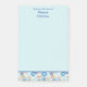 A pattern made up of needles with orange and blue buttons decorates the edge of this easy to customise post-it notepad.