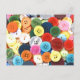 This postcard features a photo of a collection of colourful buttons for sewing.