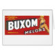 Vintage fruit crate label for Buxom Brand Melons from Yuma, Arizona.