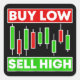 Cool minimal Sticker for every daytrader and stock market trader saying buy low sell high and candlesticks.