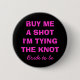 Buy me a shot i'm tying the knot button for bride to be. Funny quote for bachelorette party. Black and neon pink letters. Make one for bride and bridesmaids.