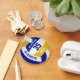 Many more team colour combinations are available! This sporty volleyball themed keychain for girls or boys features a realistic looking blue, gold and white volleyball upon which you can customise the player's name & jersey number plus school or club name and mascot name in a varsity letter style font - by katz_d_zynes