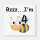 An oh so cute bumblebee and text that reads "Bzzz...I'm 4" on Buzz Bumblebee 4th Birthday T-shirts, bodysuits, cards, stickers, mugs, magnets, tote bags, and other 4th birthday apparel and gifts.