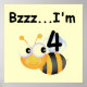 An oh so cute bumblebee and text that reads "Bzzz...I'm 4" on Buzz Bumblebee 4th Birthday T-shirts, bodysuits, cards, stickers, mugs, magnets, tote bags, and other 4th birthday apparel and gifts.