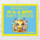 Buzzy beginnings for our little honeybee-to-bee! Baby boy baby shower in yellow and blue, Buzzing with joy: Welcoming our newest little stinger, in this cute little bee theme for our baby shower. Sparkling wine bottle label.