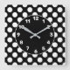 black and white polka dot patterned square wall clock