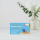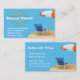 Eye catching bright summery double sided business cards with a stripy deckchair under a beach umbrella, classic seaside scene. Click customise if you'd like to change the background colour. Text and image on front and reverse. Template is for a seaside café but these business cards are ideal for any business by the sea or relating to holidays and travel.
