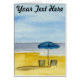 A simple watercolor landscape of welcoming beach chairs and beach umbrella by the sea. Customise by changing the text to suit yourself!
