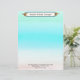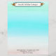 Designed for a holiday vacation cottage or home, this letterhead features a gradient of light green shading through blue to pale sandy tan at the bottom. The name of the business is in an oval bordered in blue-green and flanked by little sea stars. The address and phone number is at the bottom. The back is the same gradient, minus the text and objects. Easily adaptable for a variety of businesses, or personal use.