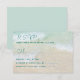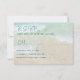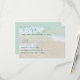 Beach wedding reply cards with guest number wording. Seashore background with dark teal blue text. This design is part of the By the Sea wedding collection.