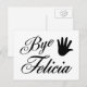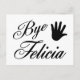 Fancy cursive lettering that says, BYE FELICIA. With a hand waving at you.