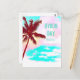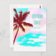 Travel poster print of a palm tree in Byron Bay, a coastal town in NSW, Australia in an arty modern colourful vintage style of travel art print. Blue sky, Summer vibe with tropical palm tree hipster vibe in country Australia.