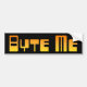Black bumper sticker with "Byte Me" in orange techie lettering.