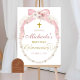 Pearl Pink Boho First Holy Communion Welcome Sign Poster, Pink Bow Coquette First Holy Communion Welcome Sign Poster, C83