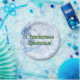 C Рождеством Христовым! Merry Christmas in Russian. Few large snowflakes on a white and blue orbed background. Green font