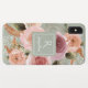 "Sage Foliage Blush Peach Peony Rose Floral Name iPhone XS Max Case." A background and frame of trendy silver sage (can be changed) shows off the modern, painterly style watercolors. Beautifully capturing the ethereal beauty of this floral design. Roses, peonies and ranunculus flowers with earthy, muted green ferns and leaf foliage with earth tone colours and forest green greenery. All were beautifully painted in watercolor by internationally licensed artist and designer, Audrey Jeanne Roberts.