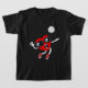 The t-shirt feels and looks great quality, a good thick cotton. It will be a little big for my son, but that means he will be able to wear it and not out grow it too soon. The print was as described on the order when personalised. True size, shape and colour T-shirt- thanks.