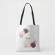 Beautiful tote bag featuring cabernet purple and pink flowers and green leaves