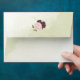 Beautiful wedding envelope featuring cabernet purple and pink flowers and green leaves