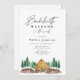 This fun invite featuring a watercolor illustration of an outdoor camping scene with a cabin. The perfect start to a memorable bachelorette weekend or party! Customise with your information for the bride to be.