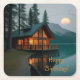 These paper party coasters feature a rustic lake house with cosy lighting and reflections.