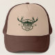 Family Name Cabin Forest Green with Pine Trees and deer Trucker Hat. Perfact for hunting.